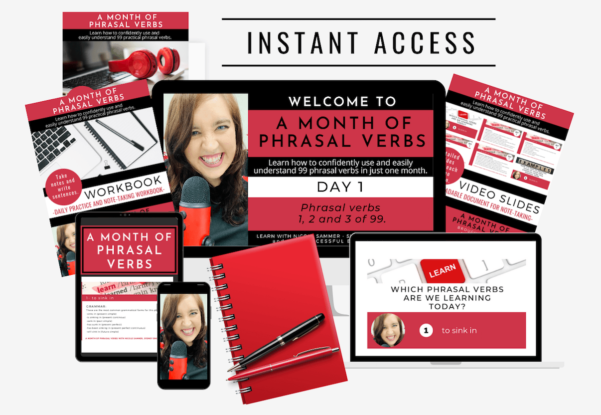 Click on the red button to purchase A Month of Phrasal Verbs, your effective step-by-step solution to easily achieving English language success.